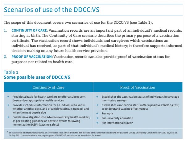 The DDCC:VS is meant for use at schools, at work, for international travel, and for contact tracing initiatives.